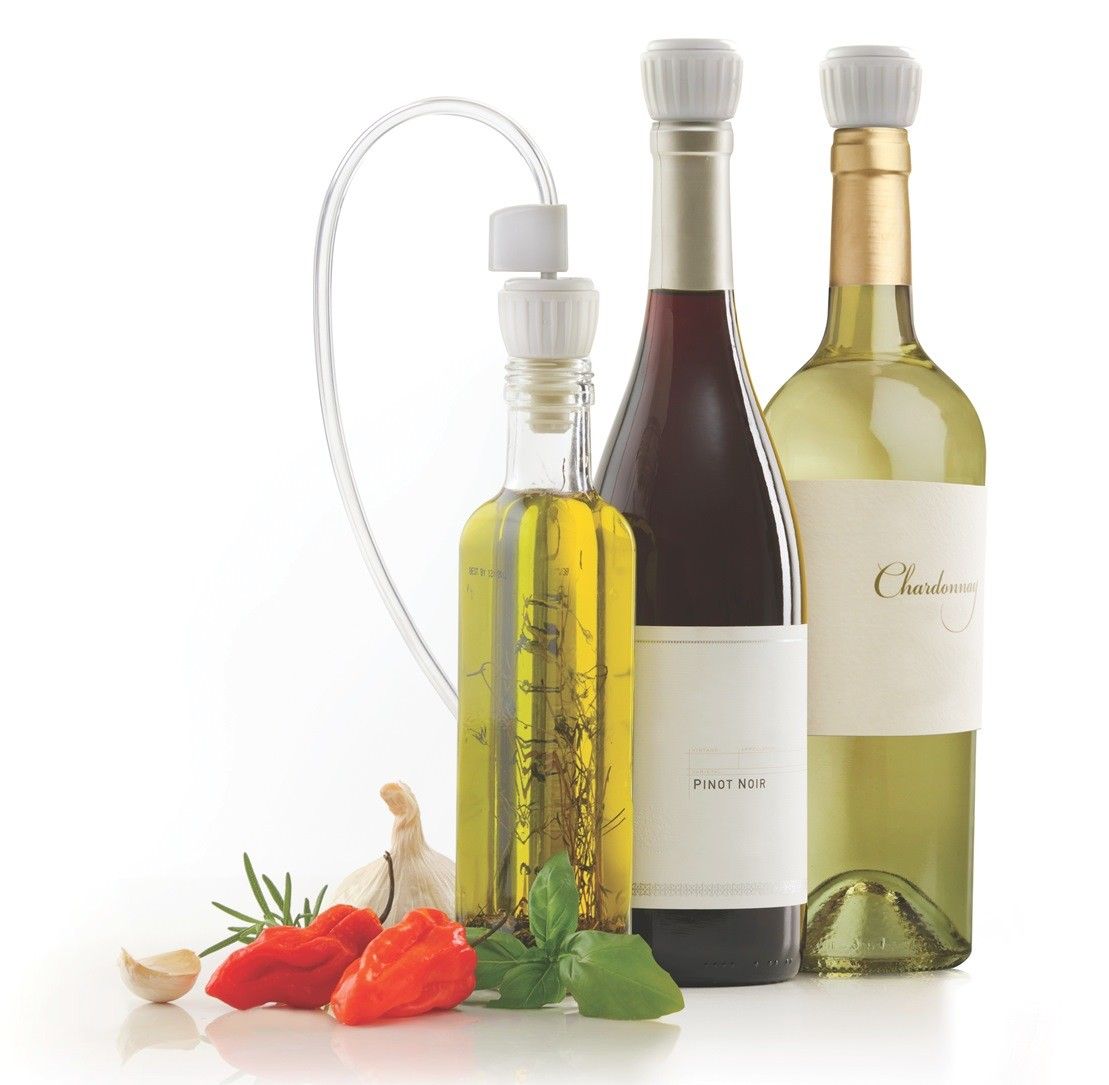 Hou al uw vloeistoffen, zoals olie, azijn, wijn, melk en vele andere langer vers door ze onder vacuum te bewaren.