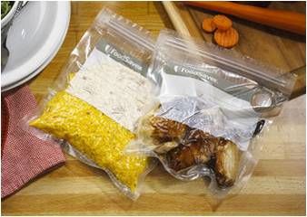3. Uw voedsel wordt in 10 seconden vacuum verpakt. Door de rits (zip) in de zak, kunt u het makkelijk openen en de zak meerdere keren gebruiken.