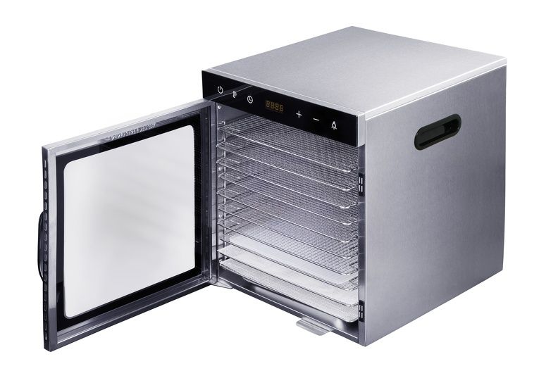 De enige voedseldroger die volledig van RVS is in deze prijsklasse: zowel de roosters als het huis is van RVS-inox. Er komt dus helemaal geen kunststof in de buurt van uw voedsel.